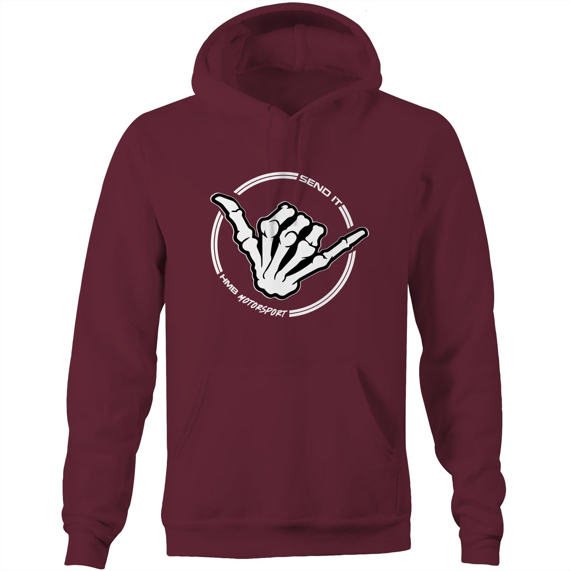 Unisex pocket hoodie. Regular fit, pullover hood, inset sleeves, kangaroo pocket. Heavy weight, 350 GSM, 80% cotton 20% polyester anti-pill fleece. Lined hood, tonal shoestring drawcord, sleeve cuff ribbing, preshrunk to minimise shrinkage.